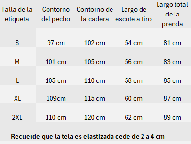 Talles: S-M-L-XL-XXL.